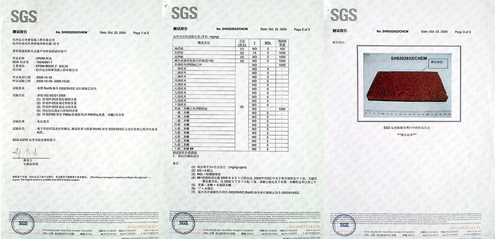 通過歐盟SGS安全環保認證,同時符合新國標GB36246《中小學合成材料面層運動場地》要求,上海團標要求。