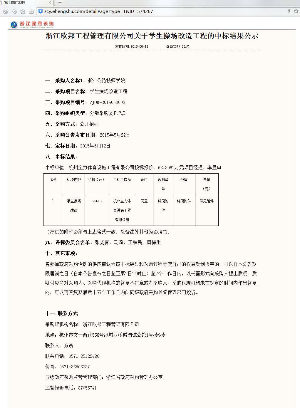 上一篇:杭州寶力體育中標中國計量學院五人制足球場和網球場地改造工程