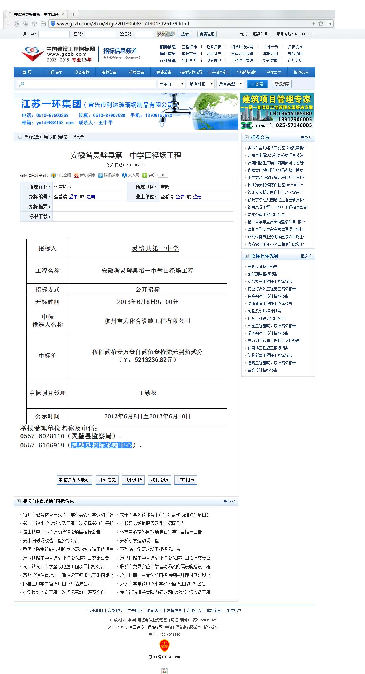 安徽省靈璧縣第一中學田徑場工程